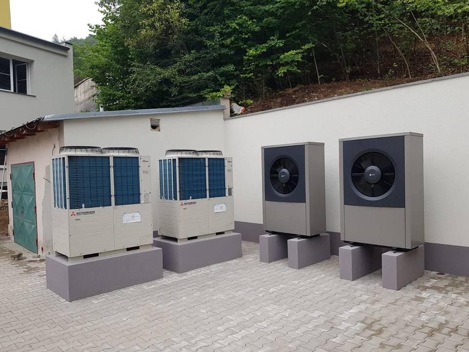 Jednalo se o výjimečnou kombinaci několika typů tepelných čerpadel s využitím pro jeden areál. Společnost VESKOM konkrétně instalovala tepelné čerpadlo systém země-voda IVT GEO G 280 pro vytápění objektu a IVT AIR X 170 systém vzduch-voda s možností klimatizace. Systém byl doplněn i o vysokoteplotní tepelná čerpadla MHI Q-TON pro dostatečné množství TUV a Q-TON, které zajišťuje ohřev bazénové vody. Realizováno bylo vrtné pole 20 vrtů o celkové délce 2200 m.